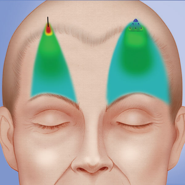 在髮際線創造3-5個微小切口(約1-2公分)提供內視鏡深入,有內視鏡的協助,醫生視野更加開闊不受侷限,因此能夠避開精細的神經血管做大範圍肌肉、組織剝離,剝離放鬆後再針對鬆弛肌膚利用五爪釘(Endotine)予可吸收縫線做拉緊,將肌膚固定於骨膜上。